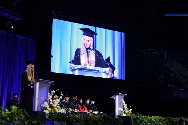“Earning a university degree is a significant accomplishment even under the best circumstances,” he said. “The class of 2021 has done so while overcoming a lifetime of challenges, starting with the great recession that arose when most of you were children, and continuing through to the ongoing global pandemic.”