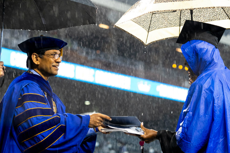 “Considering the unique challenges you overcame to get here, it is very fair to say that the classes of 2020 and 2021 are major league in every respect,” said Chancellor Mauli Agrawal. “From the great recession that arose when most of you were children; 面对我们正在开始摆脱的前所未有的全球大流行病,你们面临着前所未有的挑战。 You are here today because you refused to be defeated by those challenges.”