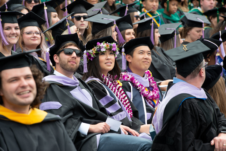 周六的毕业典礼上,毕业生们在阴天下庆祝,但没有淋湿。 周日的典礼下起了雨,但这并没有浇灭毕业生和为他们欢呼的来宾们的热情。